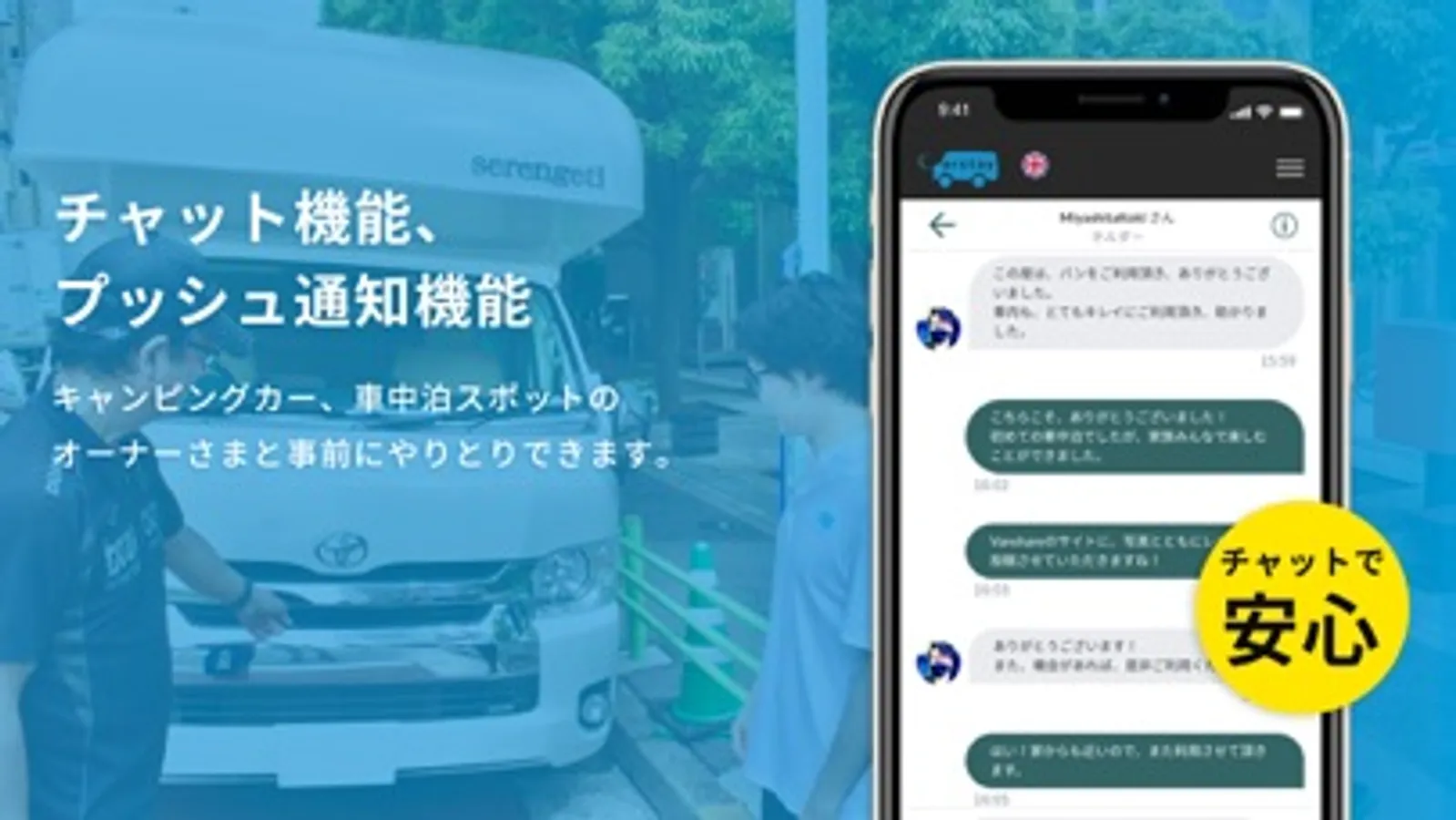 キャンピングカー、車中泊スポットのオーナーさまと、アプリでサクサクコミュニケーションが取れるので、初めてでも安心です。