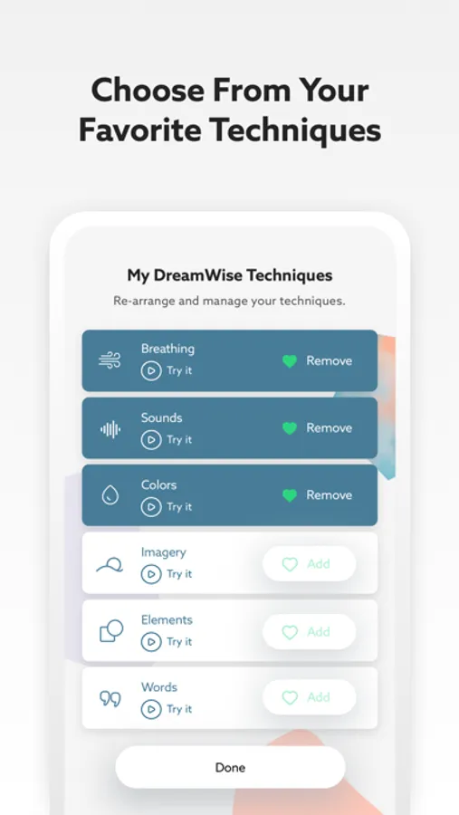 Whether you have previous meditation experience or not, at DreamWise®, you can learn 06 ancient techniques and develop your own meditation style.