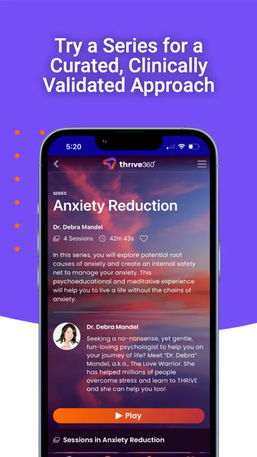 Experience this groundbreaking app that puts comprehensive support at your fingertips, empowering you to thrive in every aspect of your life. Thrive360 is your go-to platform for accessing session videos from renowned doctors, therapists, and experts, covering hundreds of topics to help you overcome challenges and achieve mental prosperity. Feel better in 15 minutes or less!