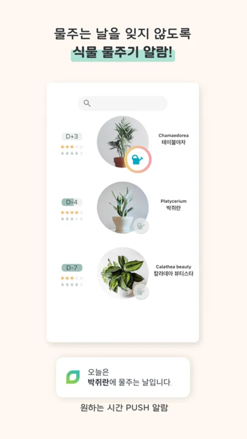 - 물주는 날을 잊지 않도록 PUSH 알람을 통해 알려드려요