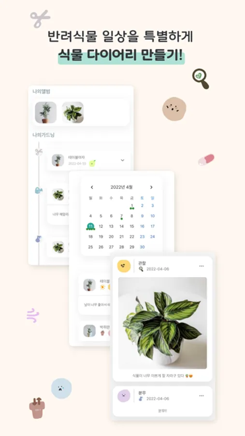 - 식물 사진이나 메모를 통해 성장하는 식물을 기록해보세요