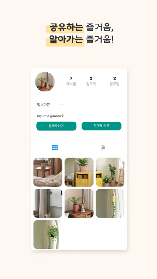- 다른사람의 프로필을 통해 키우는 식물을 구경하고 식물 노하우도 둘러보세요