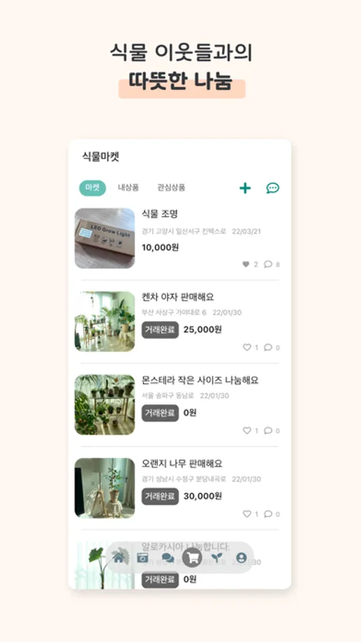 - 즐거운 식물집사 생활을 공유하거나 다른 사람들의 새로운 이야기를 확인하세요