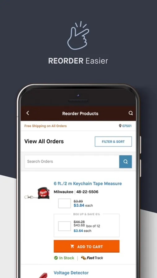 With the Reorder tab, you can now quickly shop the items you order most to keep your truck stocked for your next job.
