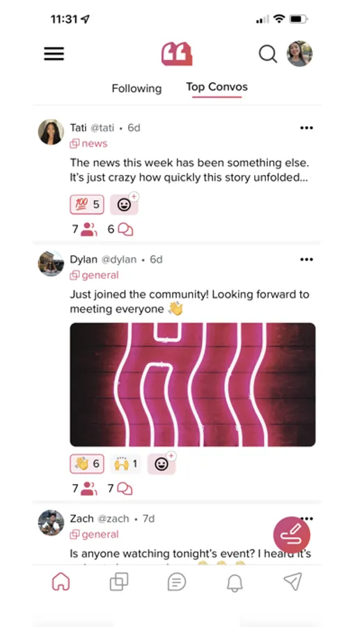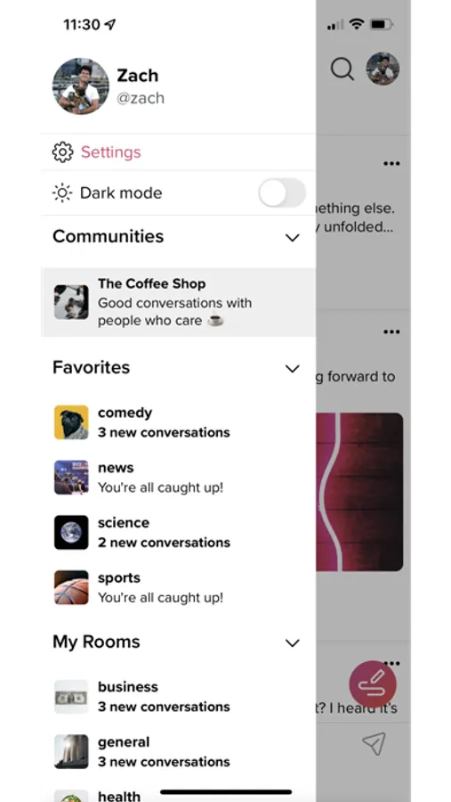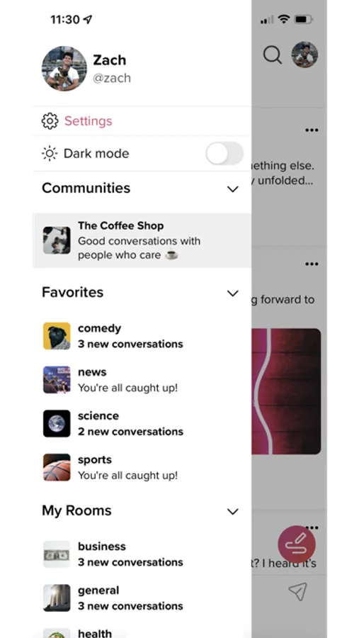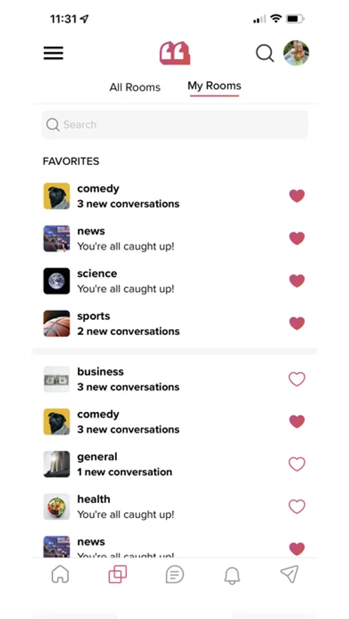 • Join topic-based rooms to talk about your interests, share news, and stay informed
