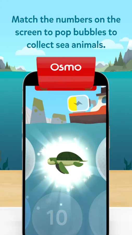 In Osmo Genius Numbers, play with physical Osmo Numbers Tiles, including dots and digits. When your results match the numbers on the screen, cartoon bubbles burst with a satisfying pop! Count, add, subtract, or multiply to collect over 100 fish across the world to learn about geography and marine biology!