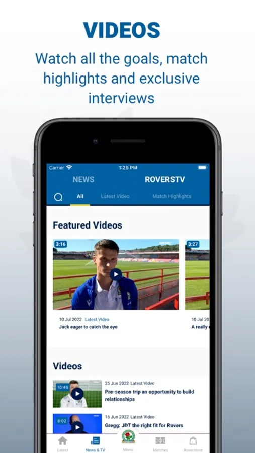 - RoversTV: Exclusive video content – match replays, interviews, features and more, including live match audio and video.