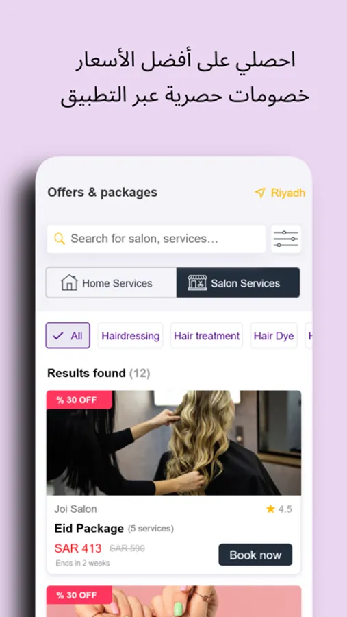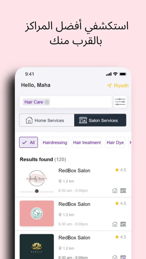 الطريقة الأسهل للحجز مع الصالونات والمنتجعات الصحية المحلية. أهم الميزات تشمل: