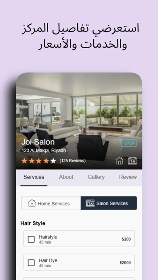 - عرض الأسعار: - اطلع على أسعار جميع الخدمات قبل الحجز.