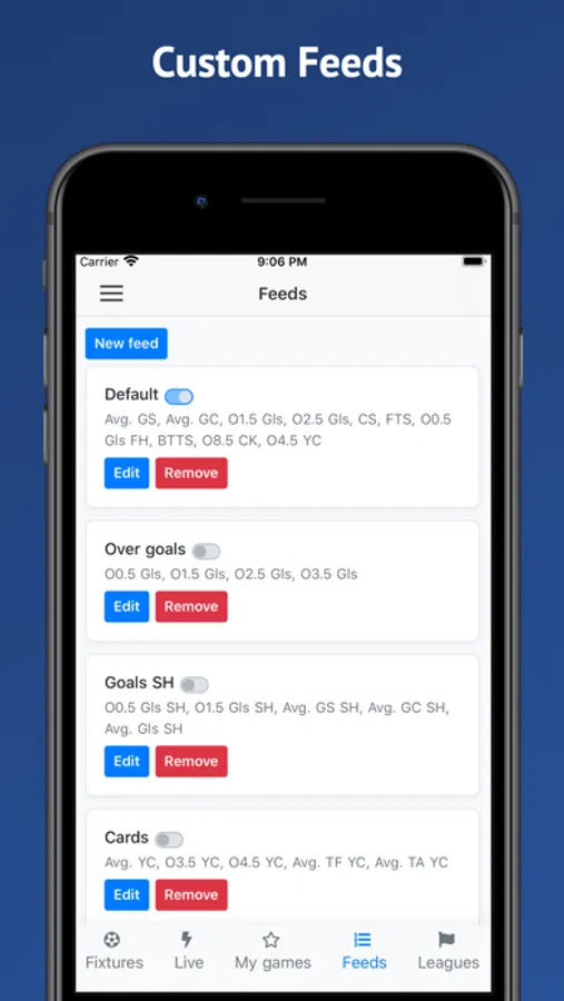 Custom Feeds - Create unlimited feeds to see only the stats important to you. If you want to see only stats for goals on your home page you can build your goals feed.