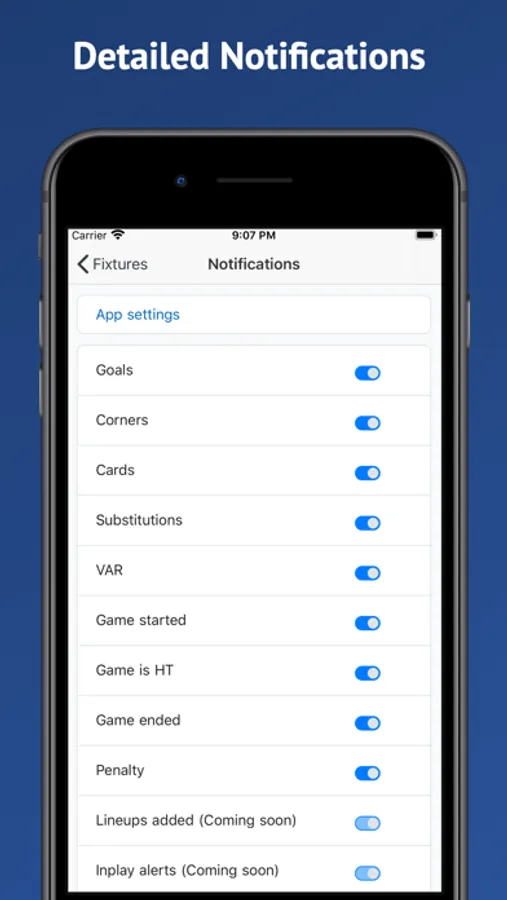 Lineups - Detailed statistics about players (games played, cards, goals, etc.). Get notifications when lineups are available for a game.