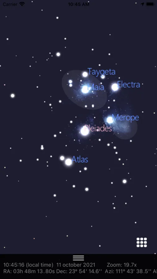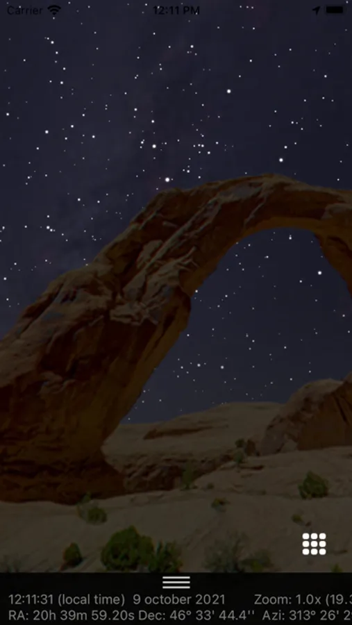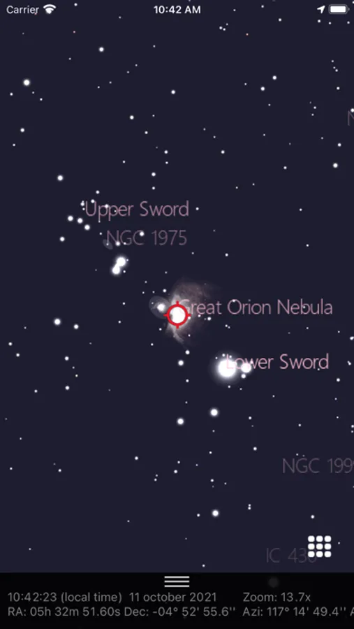 - Each object has a detailed card which is updated in real time (distances, right ascension, declination, azimuth, altitude and magnitude).