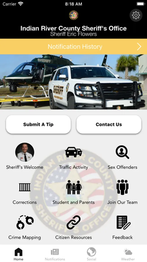 The Indian River Sheriff’s Office mobile application is an interactive app developed to help improve communication with area residents. The Indian River Sheriff App allows residents to connect with the Indian River Sheriff’s Office by reporting crimes, submitting tips, and other interactive features, as well as providing the community the latest public safety news and information.