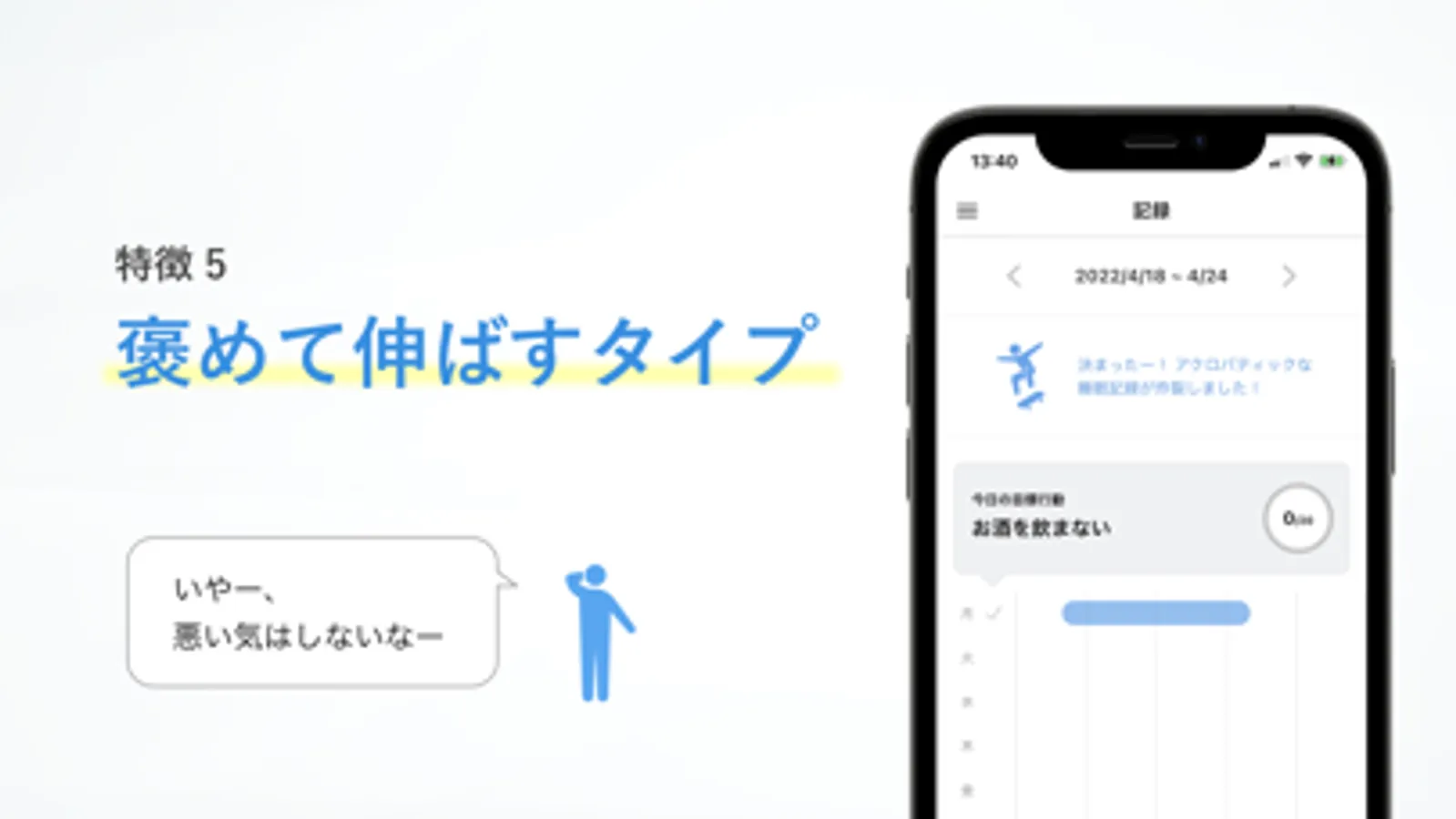 アプリを入れる前の状態と比べて、どれだけ改善したかを表示します。