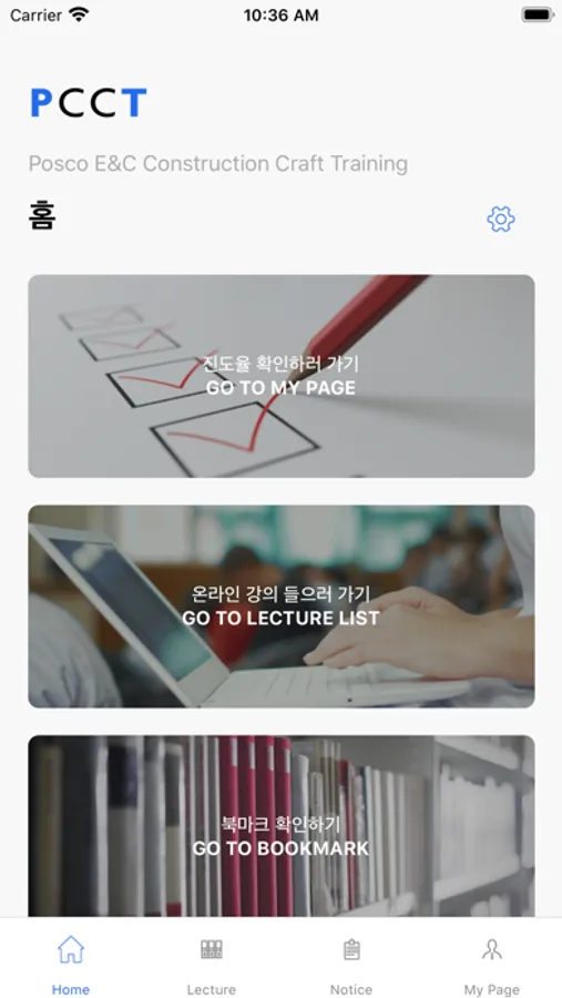 PCCT (POSCO E&C Construction Craft Training) application is designed to train construction skilled worker created by POSCO E&C, POSCO 1% Sharing Foundation, Inha University Center for International Development Cooperation and Innovation to practice corporate citizenship management philosophy.