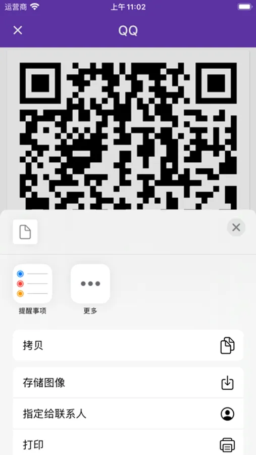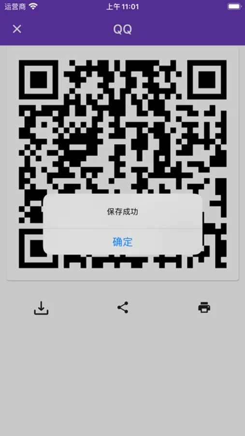 4. 生成密码的二维码卡片,可以分享二维码、存储二维码到相册、蓝牙打印二维码、扫码导入二维码。