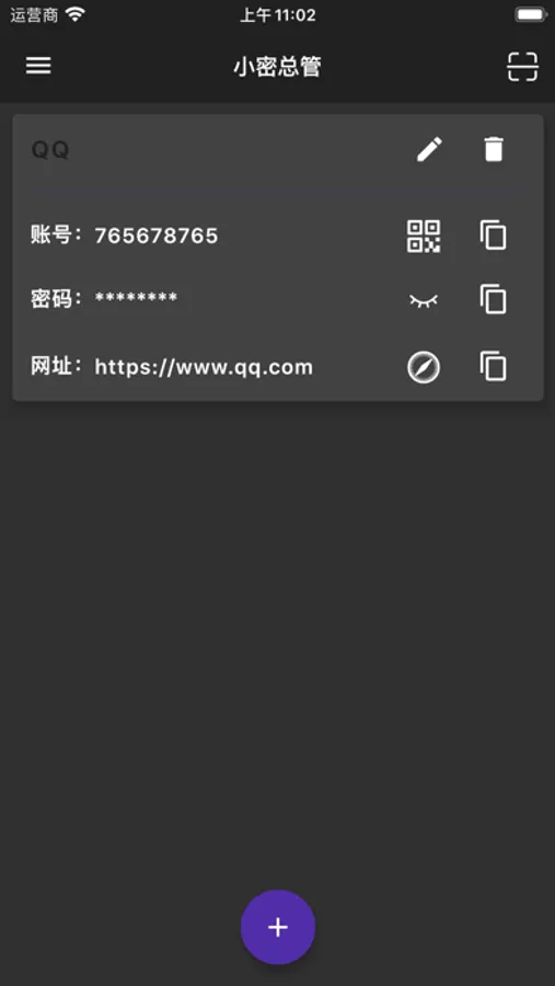 小密总管是一款网站密码管理工具,该APP的主要功能包括: