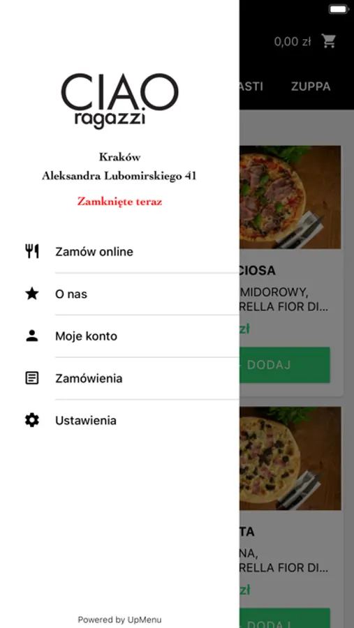 - aktualne menu i promocje