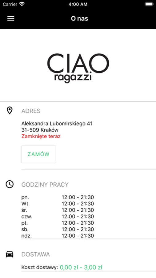 Zamawiaj online w Ciao Regazzi