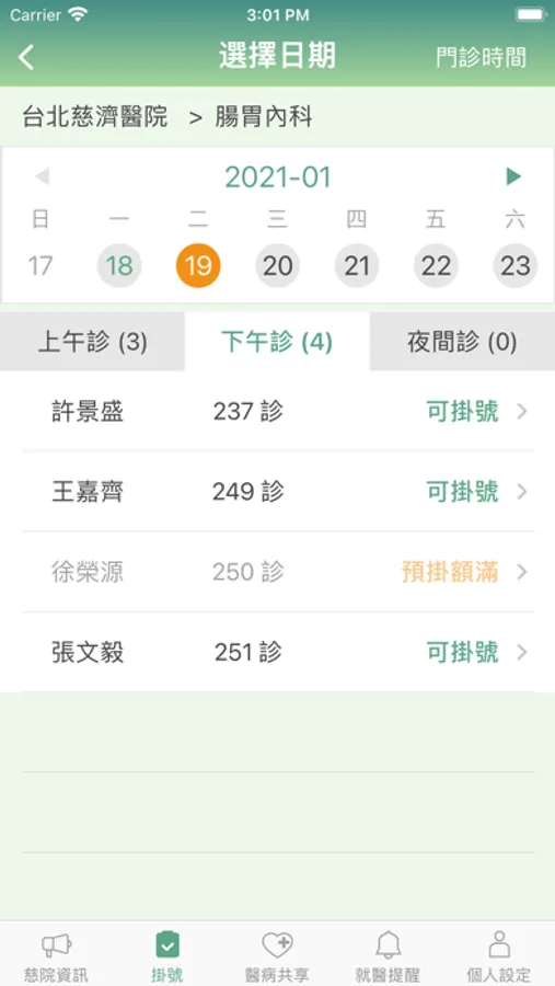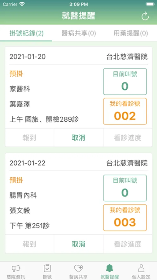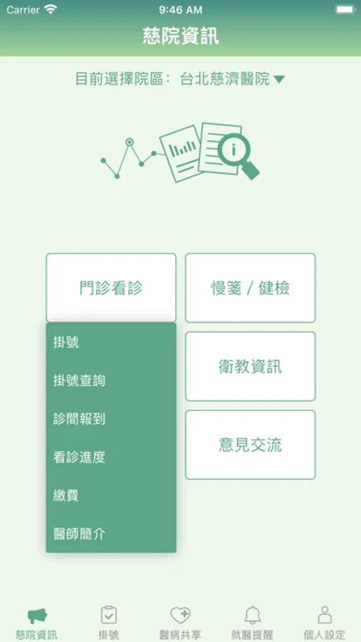 隨行動資訊科技發展,為服務廣大民眾就醫便利性 ,發展慈濟醫療志業行動掛號系統,提供佛教慈濟醫療財團法人八家院所(花蓮慈濟醫院、玉里慈濟醫院、關山慈濟醫院、大林慈濟醫院、臺北慈濟醫院、臺中慈濟醫院、斗六慈濟醫院、嘉義慈濟診所 ) 行動掛號服務,功能包含門診掛號、查詢/取消掛號、看診進度及就醫提醒、線上繳費等便利之醫療資訊服務,可隨時隨地掌握您自己及家人的健康。