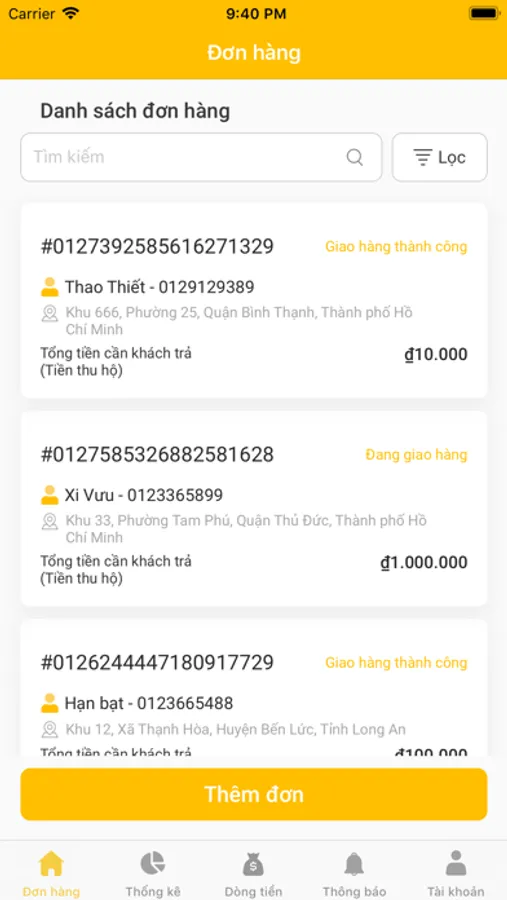 - Kiểm soát trạng thái vận chuyển của đơn hàng ngay trên app