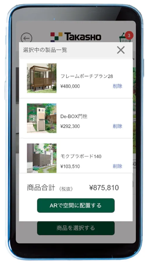 ・実寸大のエクステリア・ガーデニング商品を実空間にARで仮想設置し、シミュレーションできる