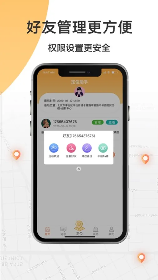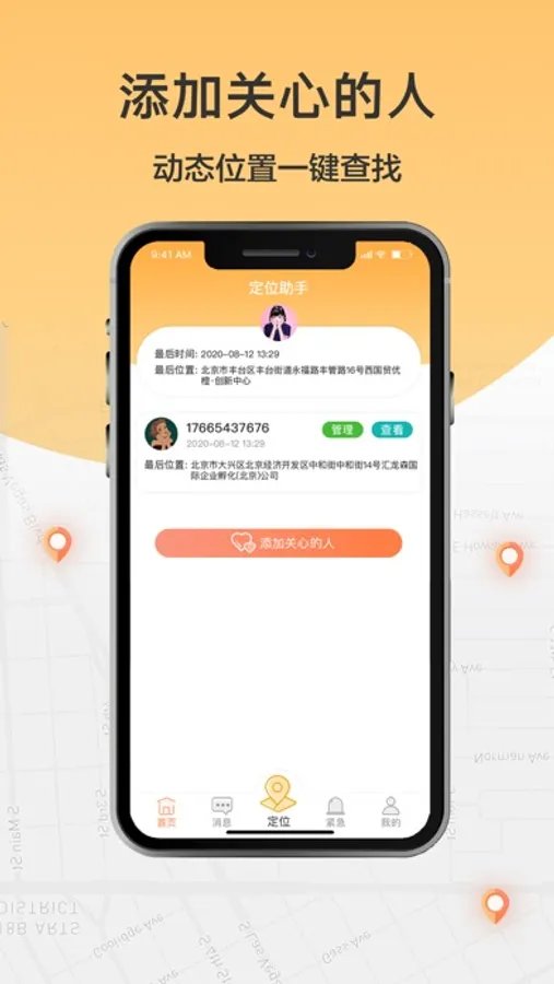定位助手精准定位实时位置,时刻记录家人朋友的移动轨迹,异地也可以实时掌握他人动态;主要功能:持续定位:后台持续定位一键查看行走轨迹一键求助:遇到困难不慌张,一键求助好友位置提醒:孩子回家,老公出门自动提醒实时掌握动态