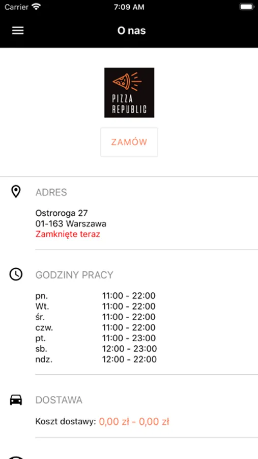 Oprócz zamawiania online aplikacja pozwala sprawdzić: