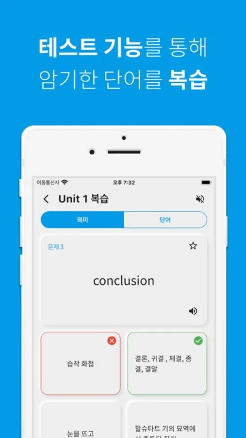 자주 틀리는 단어는 더 자주 복습이 가능하도록 지원하고 있습니다. 여러분이 앱을 더 많이 사용할수록 여러분에 맞는 맞춤형 단어장이 됩니다.