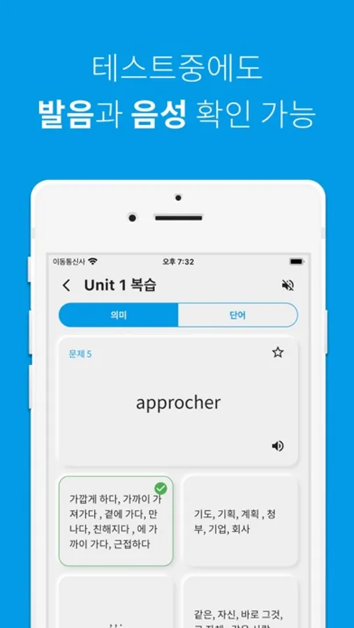- 파트별, 유닛별, 전체 프랑스어 단어를 복습하는 기능 제공