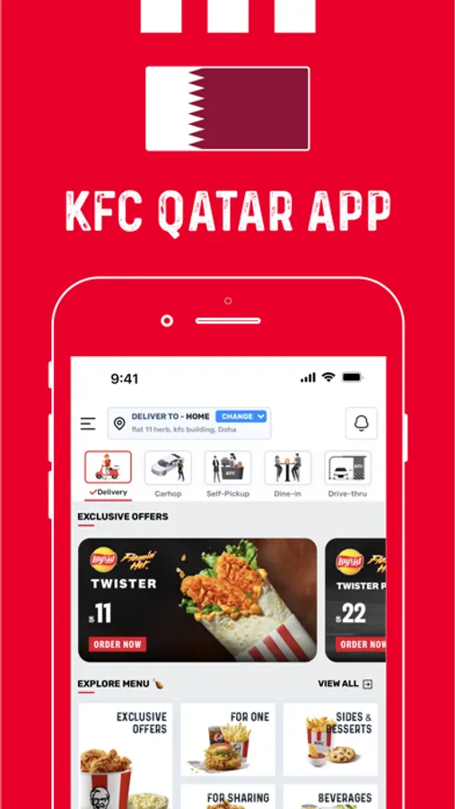 While you are out and about in the city, pickup your delicious food from any nearest KFC Qatar restaurant by ordering from the food delivery application.