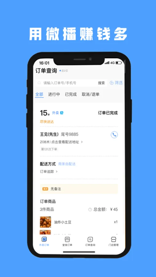 3、完善的接单系统:手机自动提醒,快速接单,让你及时配送;