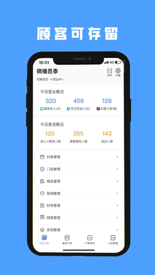 微播商家版APP,是为微播合作商家/门店打造的店铺管理软件。微播商家版APP帮助商家管理外卖信息,专注于为外卖企业自主OMO运营提供交易系统、营销工具、运营服务等整体解决方案。