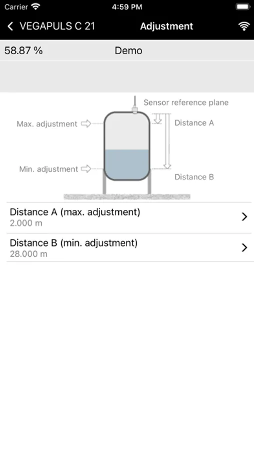 With the smartphone or the tablet you have comfortable access to the device control of the sensor.