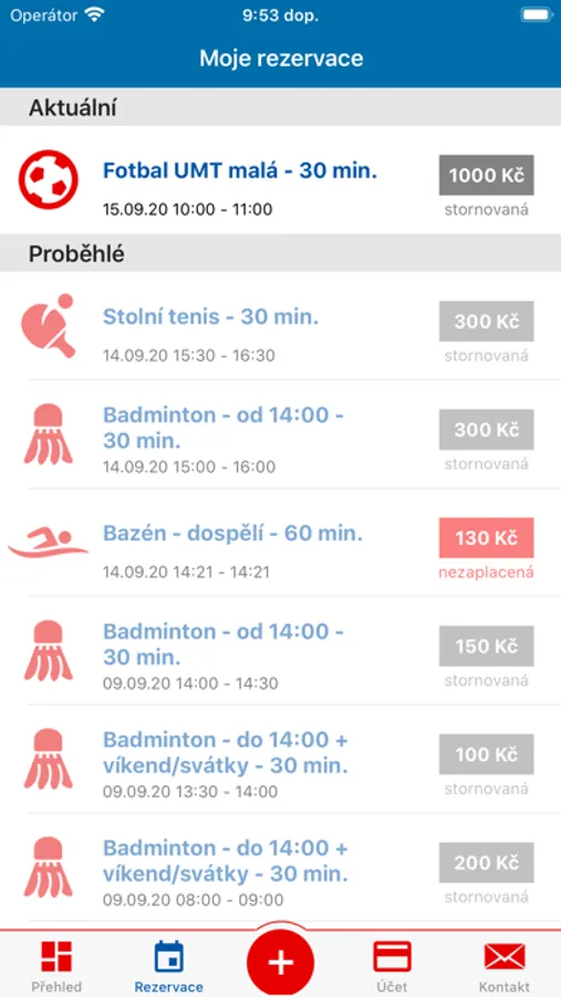 bazén, 4x badmintonový kurz, 2x stůl pro stolní tenis, pronájem haly (basketbal, gymnastika, malá kopaná, nohejbal, volejbal), fotbalová hřiště (2x malá umělá tráva a 1x velká).