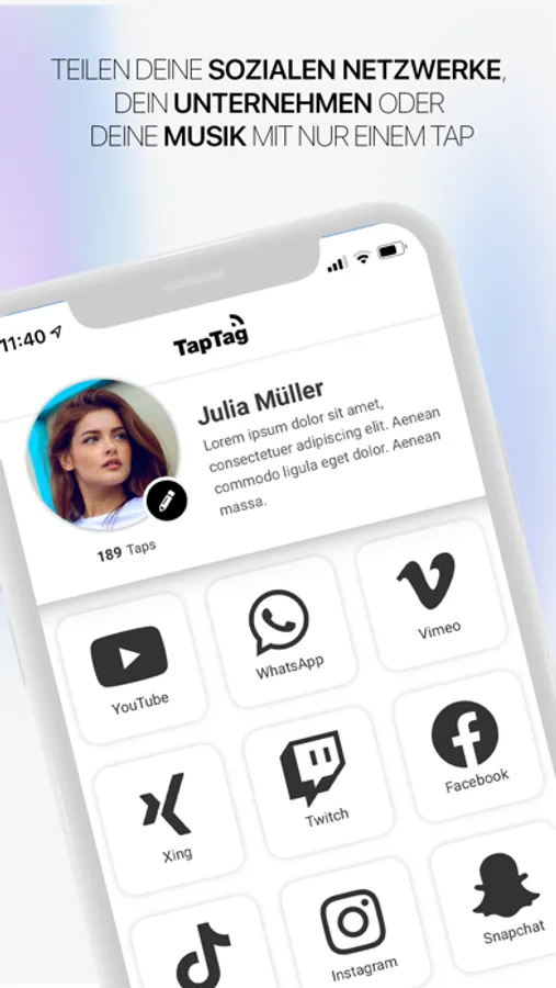 TapTag ist der einfachste Weg, deine Soziale Netzwerke & Kontaktinformationen auf einer kontaktlose Weise zu teilen.