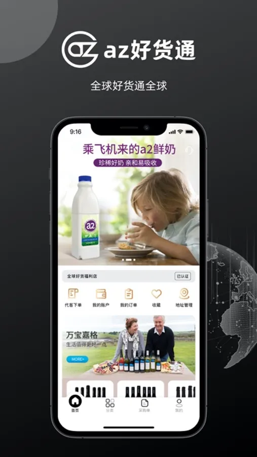 az好货通是由azg集团自主研发的、为线下经销商及中小渠道赋能的智能IT系统。通过丰富的全球品质好货和独家品牌体系,稳定的价值链,智能的营销工具和数据分析,帮助传统渠道丰富品类结构,提升小店经营效率,帮助品牌渗透到更多的中小,微小渠道。
