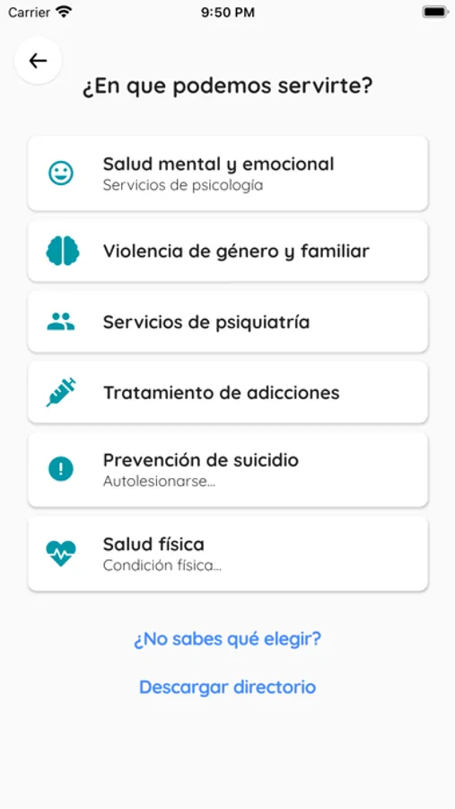 Directorio de salud para la población en general que busca ayuda física o mental, además de auxiliar con la prevención de adicciones y maltrato físico.