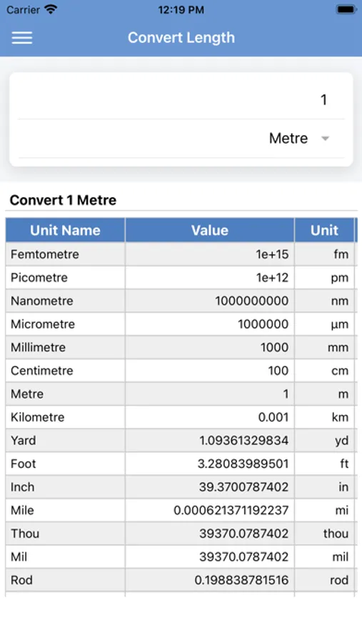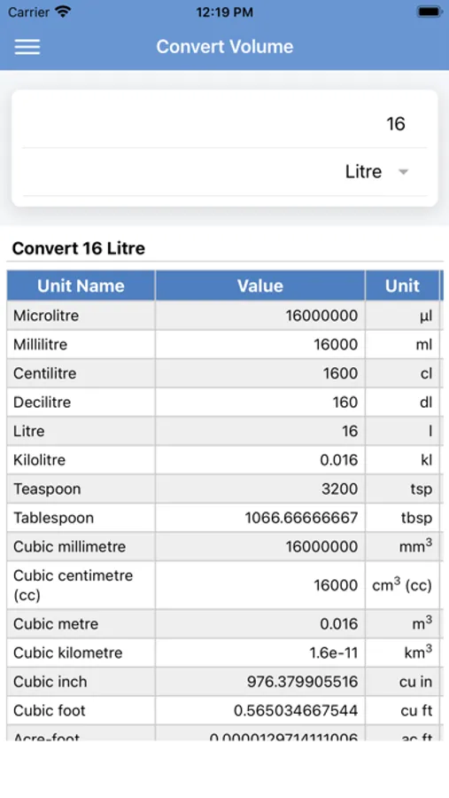 In addition, the converted values are displayed in a list, so you can check them immediately.