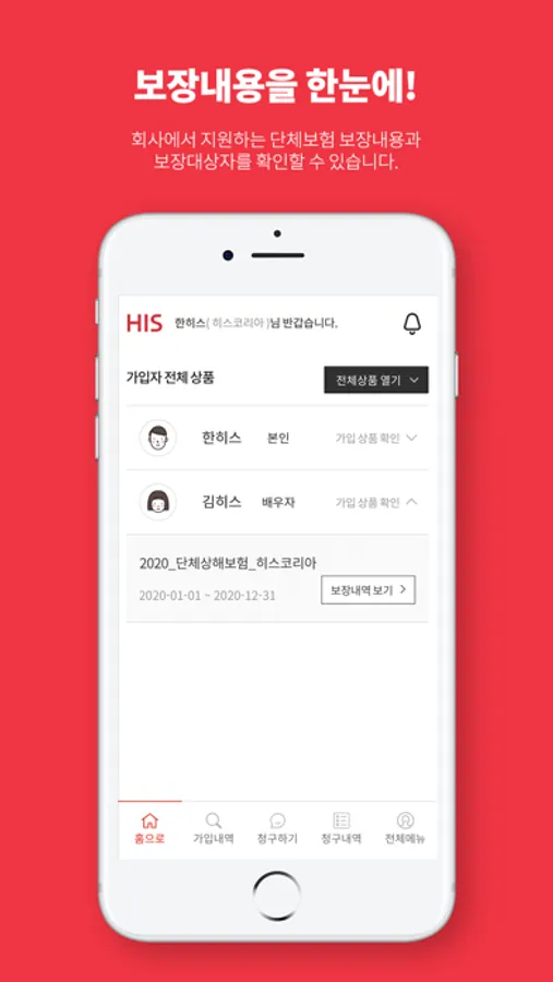 - 히스보험중개(주)를 통해 단체상해보험에 가입한 고객사 임직원과 가족의 보장내용 확인 및 보험금 청구서비스를 위해 개발된 어플리케이션입니다.