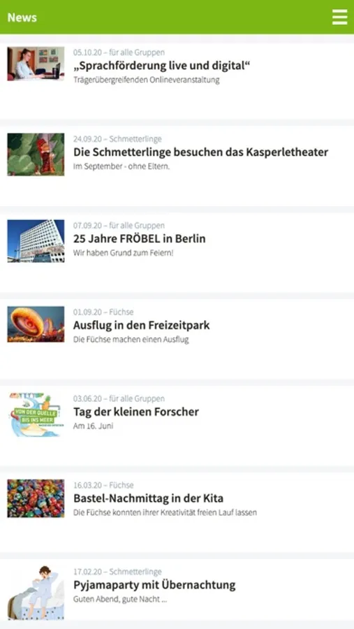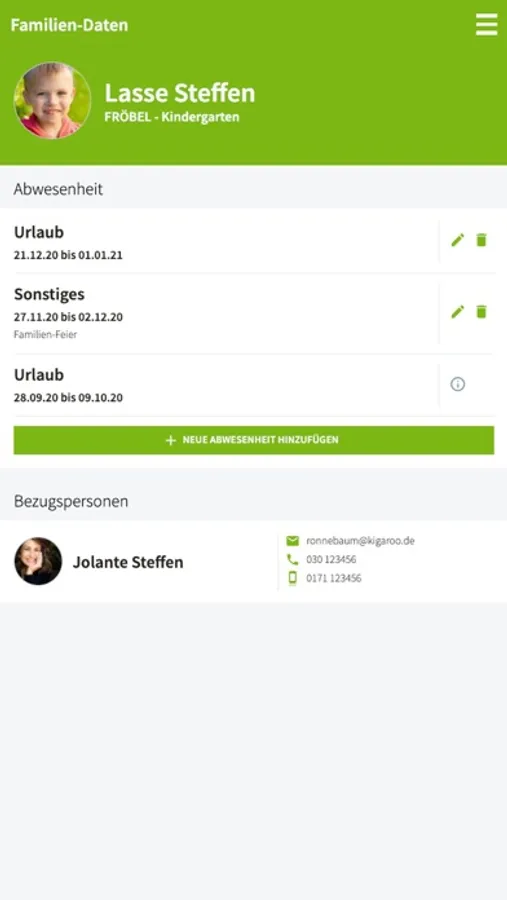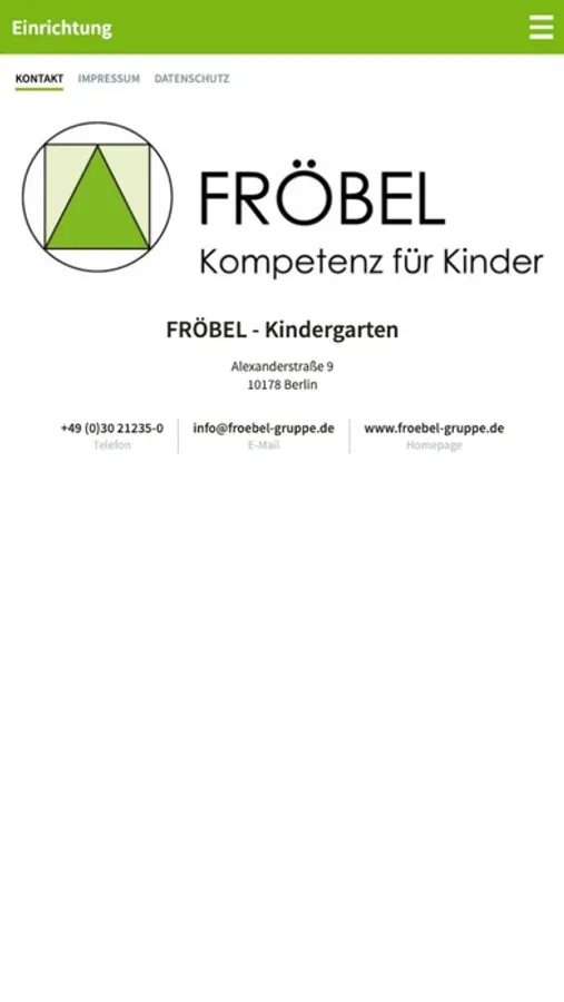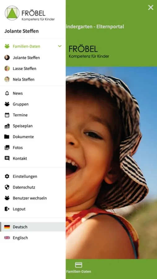 Die FRÖBEL-Family-App erleichtert Ihnen die tägliche Kommunikation rund um die Betreuung Ihrer Kinder. Sie funktioniert auch auf Tablets und die Nutzeroberfläche ist bereits in mehrere Sprachen umschaltbar. Mit der FRÖBEL-Family-App haben Sie alle Nachrichten und wichtigen Termine der Einrichtung Ihres Kindes sicher und komfortabel im Blick. Wenn Ihr Kind z. B. wegen Krankheit den Kindergarten nicht aufsuchen kann, teilen Sie dies einfach und bequem über die integrierte Abwesenheitsfunktion der App den Pädagogen Ihrer Einrichtung mit. Das vorhandene Adressbuch ermöglicht es Ihnen, komfortabel mit anderen Eltern aus der Gruppe, den Betreuern Ihres Kindes oder mit der Kita-Leitung direkten Kontakt aufzunehmen. Zudem können Sie Profilbilder für Ihr Kind und für sich selbst hochladen und festlegen, welche Ihrer Kontaktdaten auch für andere Eltern sichtbar sein sollen. Automatisch per E-Mail oder Push- Nachricht - Sie bestimmen selbst, ob und wie Sie über Kalendereinträge, Neuigkeiten oder hochgeladene Dateien informiert werden möchten. Nutzen Sie jederzeit den Zugriff auf Nachrichten, den wöchentlichen Speiseplan, Fotoalben und Termine. So sind Sie stets auf dem Laufenden und haben auch unterwegs Einblick in den Tagesablauf Ihrer Kinder. Ein integrierter Datenaustauschordner ermöglicht es Ihnen, Dokumente oder Fotos jeglicher Art mit der Einrichtung auszutauschen – und umgekehrt. Dabei wird besonderer Wert auf die Sicherheit und DSGVO-konforme Speicherung gelegt: Alle in der FRÖBEL-Family-App erzeugten Daten liegen in einem deutschen Rechenzentrum. Probieren Sie die FRÖBEL-Family-App jetzt gleich aus! Nutzen Sie dafür einfach die Login-Daten, die Sie von Ihrem Kindergarten bekommen haben.