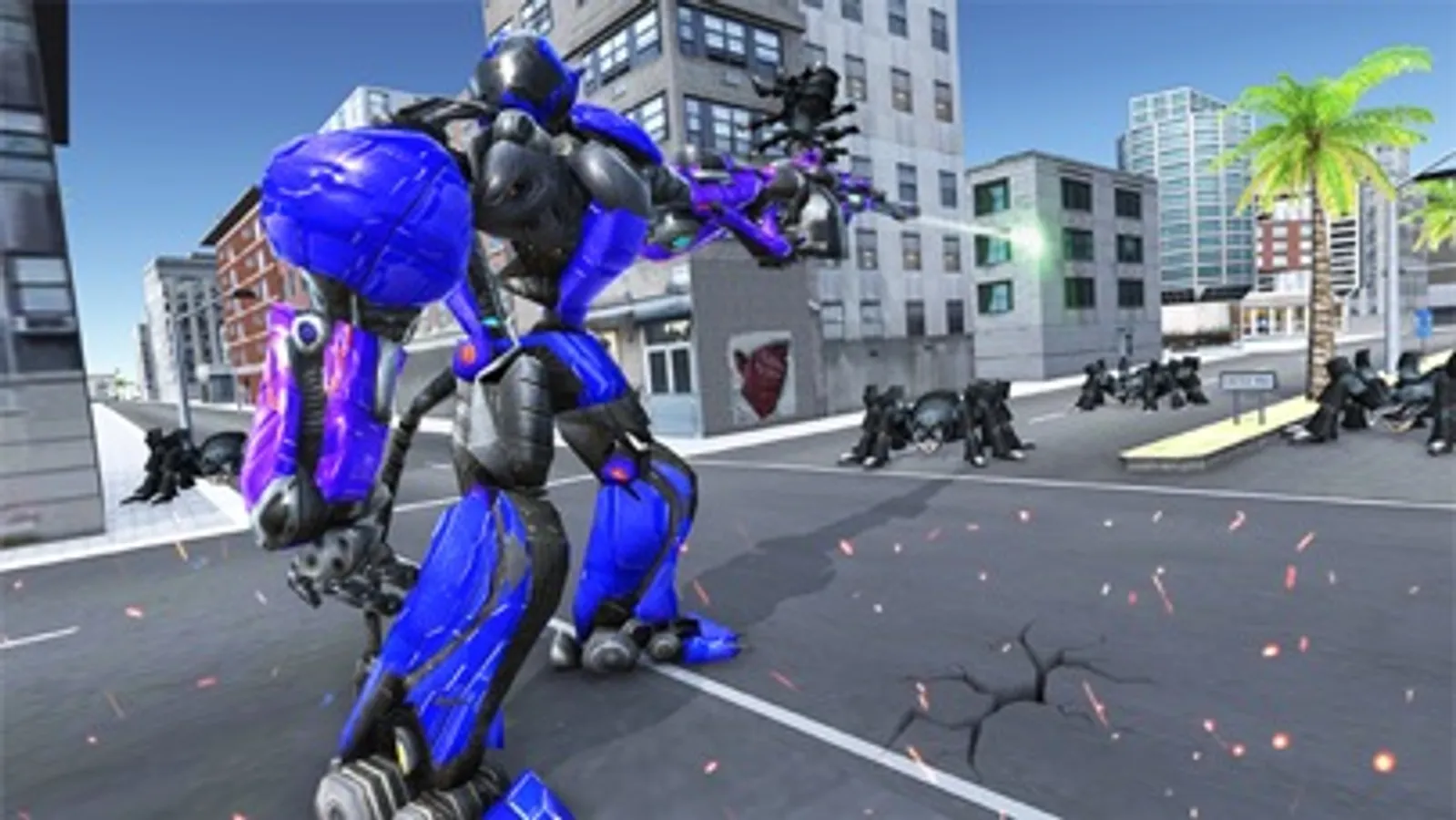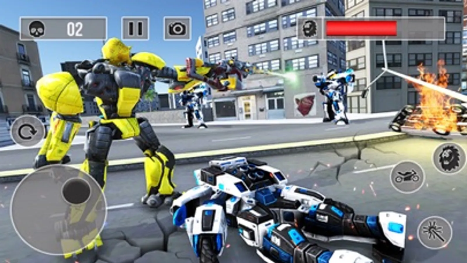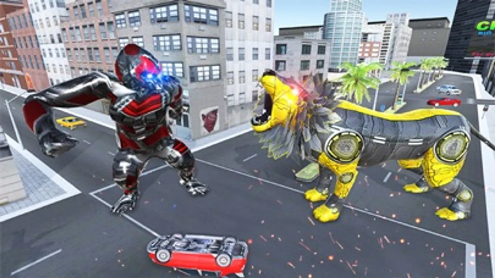 Welcome to the modern war era where animal robots and mech are attacking your city. You have to control super hero robot who can transform between lion and bike or a warrior. Rescue your city in crisis time as superhero. Transform your robot into bike to reach city area with swift driving skills. Then transform into hero or lion to take out enemy robots in this futuristic battle.