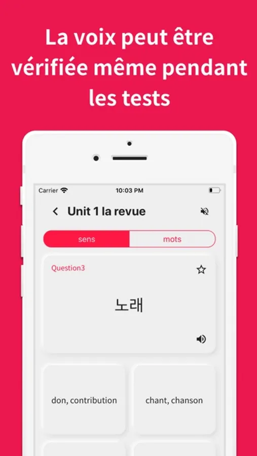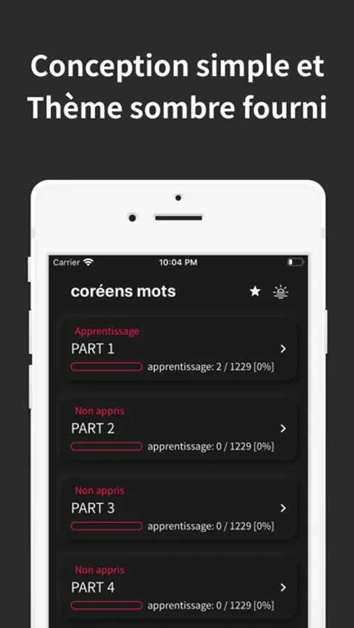-Favoris: les mots difficiles à mémoriser peuvent être ajoutés aux favoris en appuyant sur le bouton étoile.