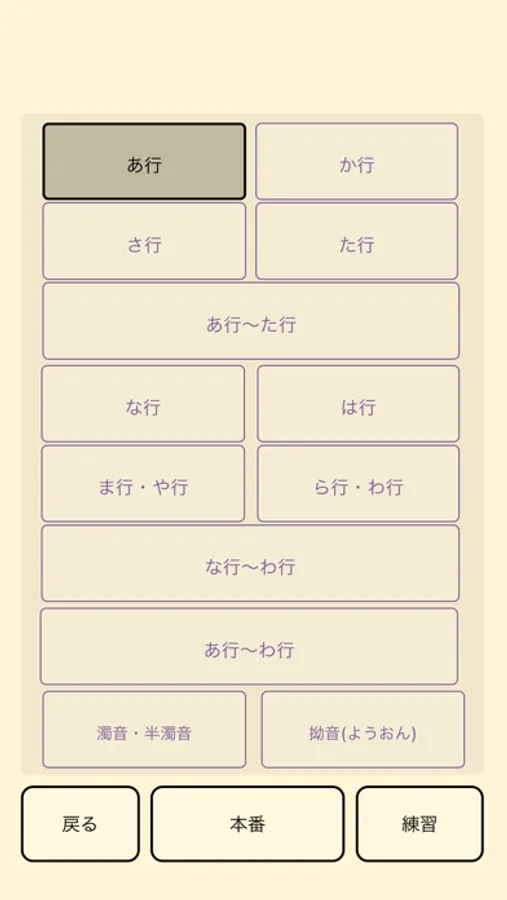 動く動作がある文字は出題されません。(の、も、り、を、ん、濁音、拗音など。)