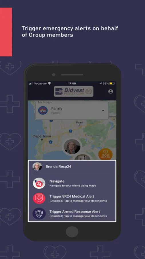 Trigger armed response and medical emergency alerts for yourself or any of Your Group