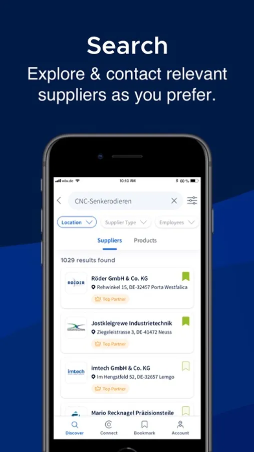 Our B2B app is more than just a simple supplier app. The precise and simple search gives B2B purchasers a wide range of reliable information on companies and their product portfolios at any time, including current contact details and prices.