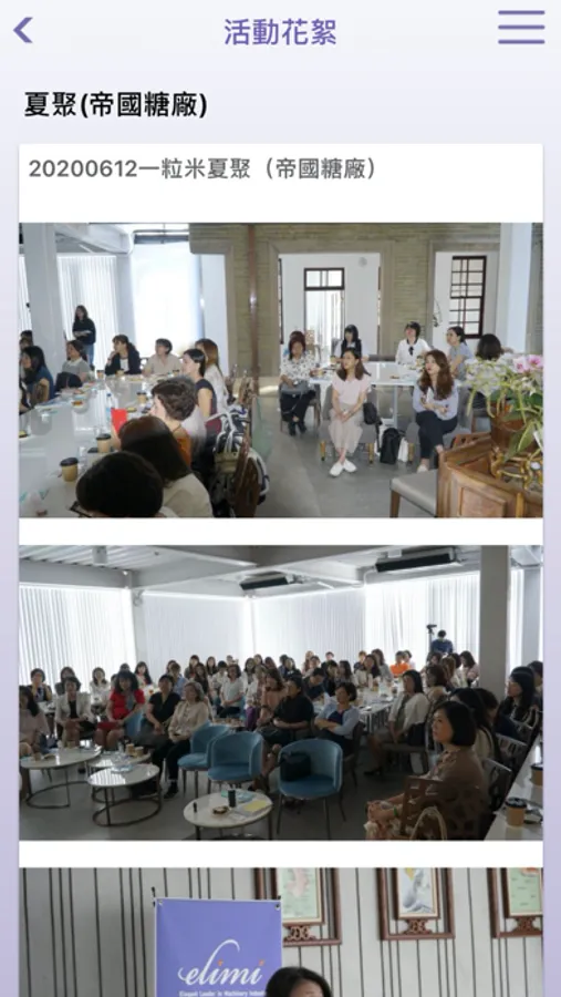 台灣區工具機暨零組件工業同業公會(以下簡稱TMBA)為專業之產業公會,為使精密機械相關產業之女性經理人,透過此平台相互交流與學習,精進專業能量,並結合女性的特質,打破「機械業=黑手產業」的迷思,開創一番新氣象,成為精密機械產業的生力軍,特成立「TMBA elimi (一粒米)聯誼會」;elimi源自於英文elegant leader in machinery industry的第一個字母縮寫而成,中文的意思為「機械產業中優雅的領導人」。