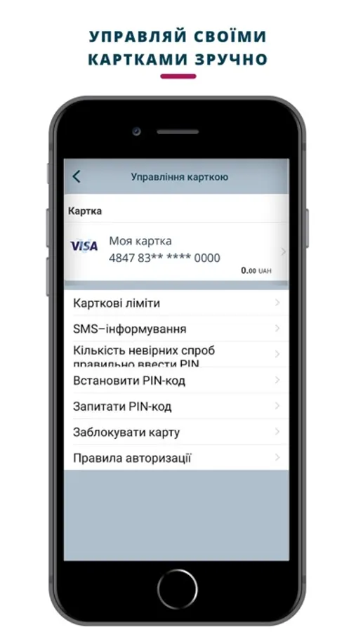 ∙ Management of Payment cards: blocking / unblocking a card, managing limits, connecting to SMS-informing services, managing the possibility of payments online and abroad;