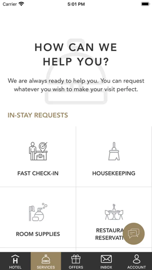 You can chat with our hotel staff regarding your guest service requests by the application and send your requests and feedback to us directly. We will be working to provide the best service instantly by evaluating the surveys regarding your experiences which we will send by the application while you are using it.