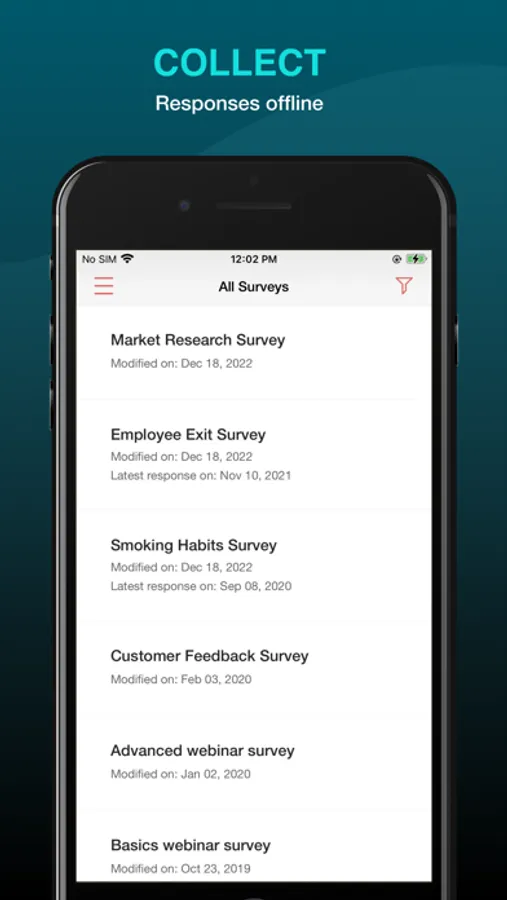 Unreliable internet can leave you in a fix. You might not be able to share a survey link and collect responses without long loading times. This app solves that problem. It allows you to collect responses, without being connected to the internet, anytime and anywhere.